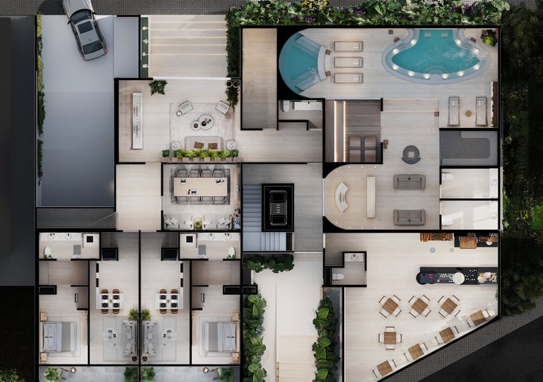 La cúspide de la vida de lujo moderna en el corazón de Playa del Carmen, México. Bienvenido a una celebración de diseño, lujosas comodidades e impresionantes vistas panorámicas ubicado en el exuberante entorno del único parque en el centro de la ciudad.