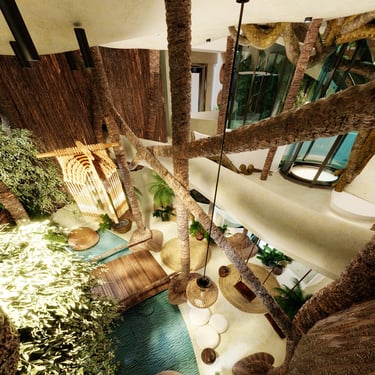 Santuario Hunab-ku; es una puerta arquitectónica que nos lleva a honrar el origen de nuestro nombre siendo un complejo único, lleno de movimiento, unificado y concentrado.