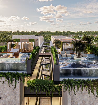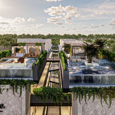 Experimenta la calidez, belleza y tranquilidad de Tulum. Esto es Hygge; 2 torres de departamentos con 32 departamentos con su propia alberca privada en cuatro niveles. Ideal para alquiler vacacional, alquiler a largo plazo, y/o uso propio.